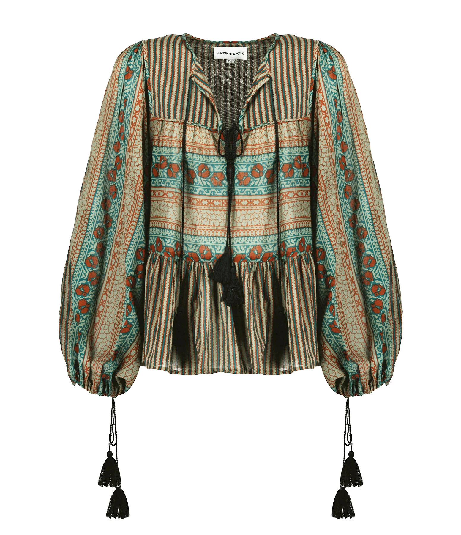 Meilleure vente ✔️ ANTIK BATIK Blouse Amelia Courte Coton Vert 💯