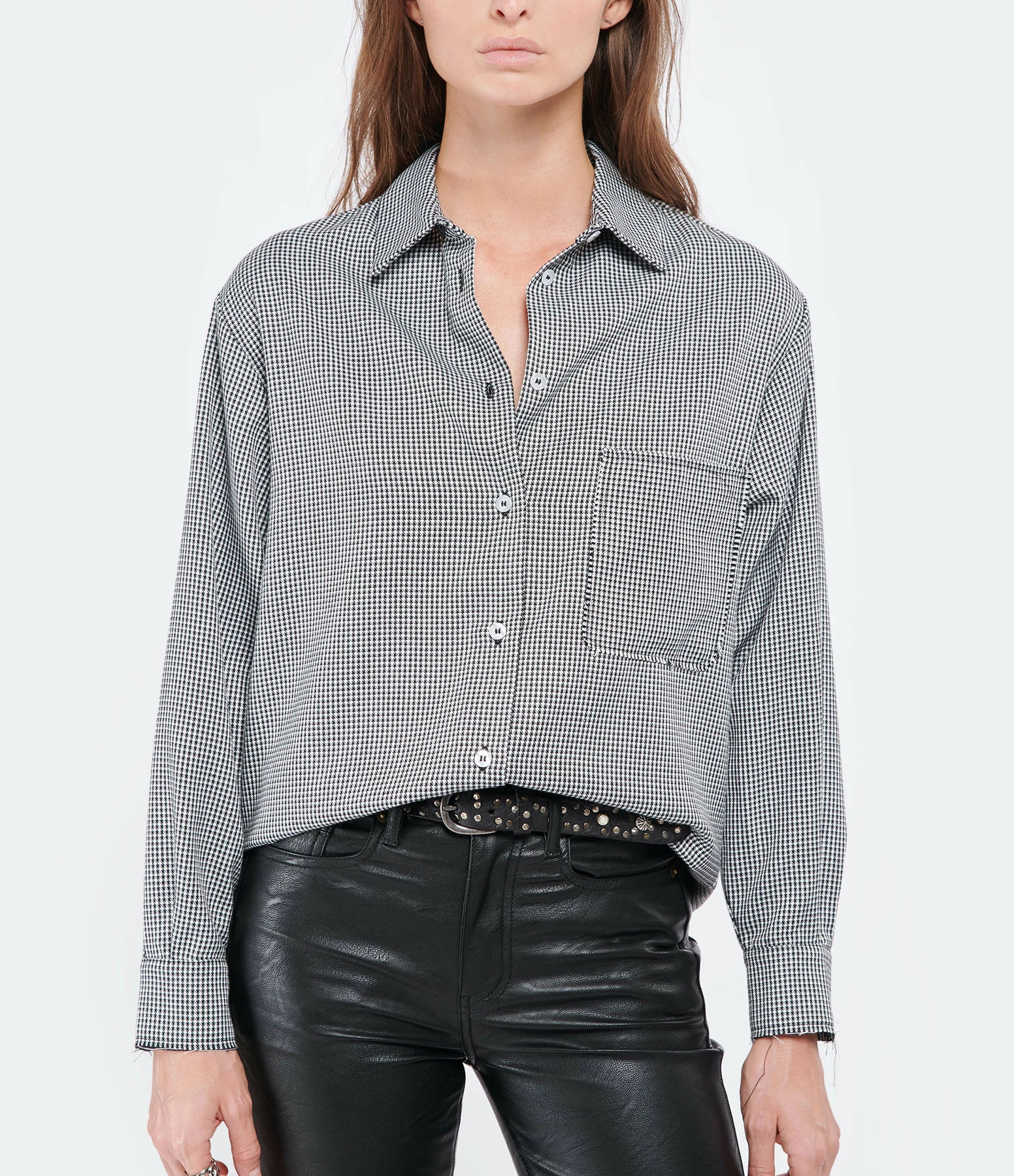 Tout neuf 💯 JEANNE VOULAND Chemise Gana Pied De Poule Noir Blanc 🎉