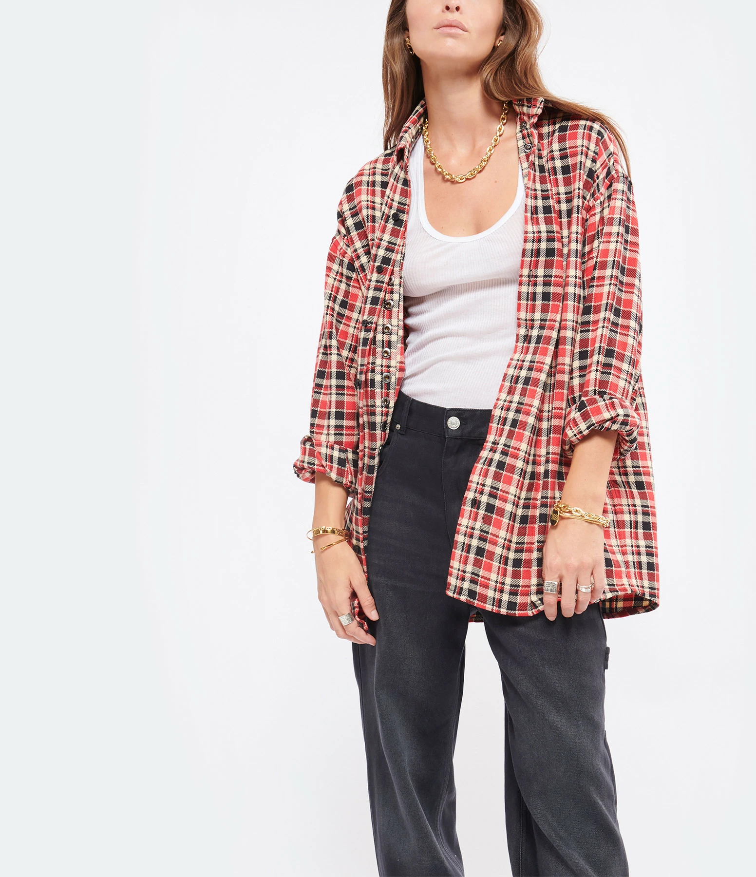 Meilleure affaire ✨ LAURENCE BRAS Surchemise Seberg Carreaux Coton Rouge ✔️
