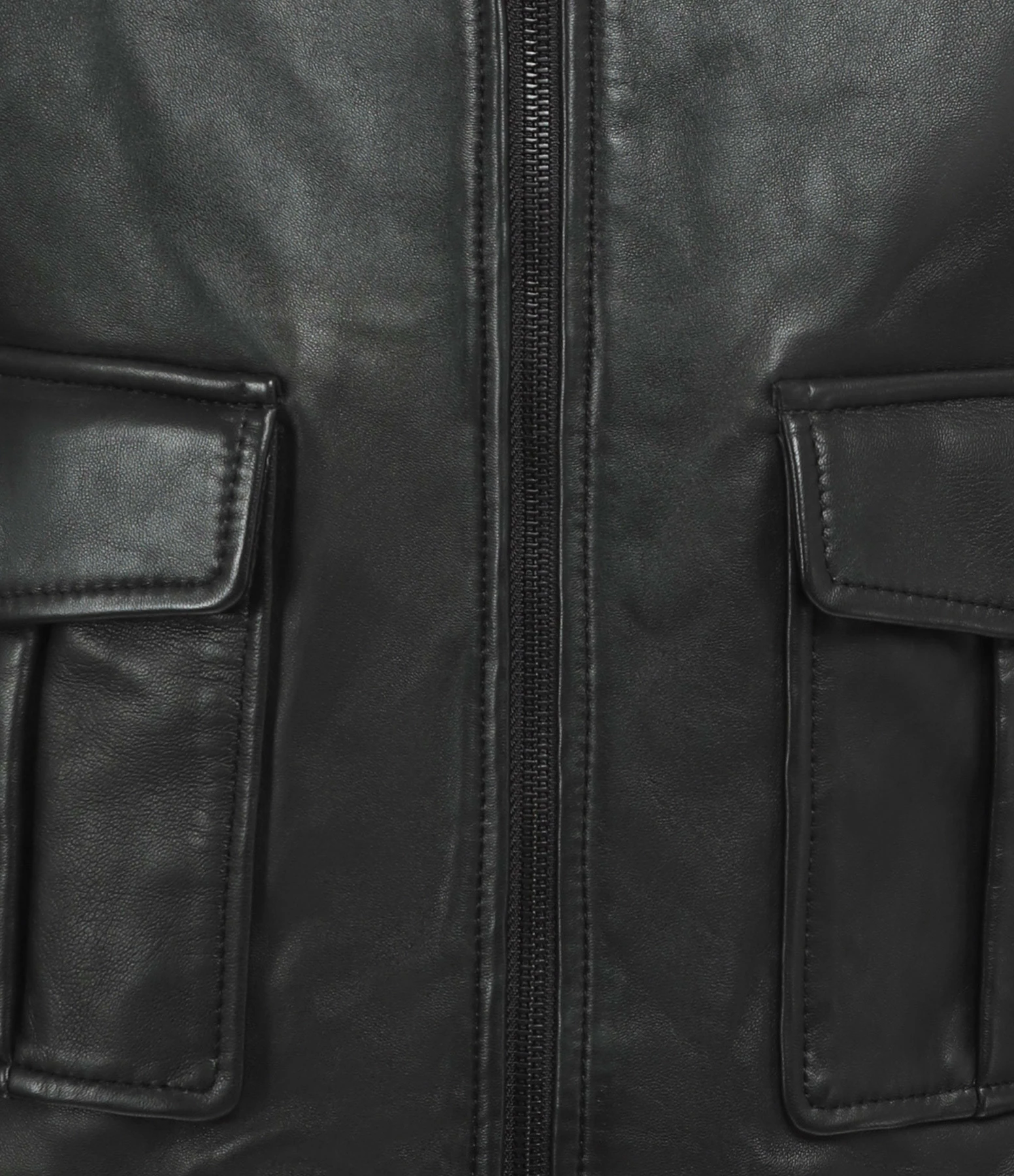 Blouson style aviateur en cuir noir pour femme. Deux poches à rabat fermées par bouton pression. Manches longues resserrées par bord côtes. Col chemise. Fermeture par zip, finitions bord côtes. Doublé.