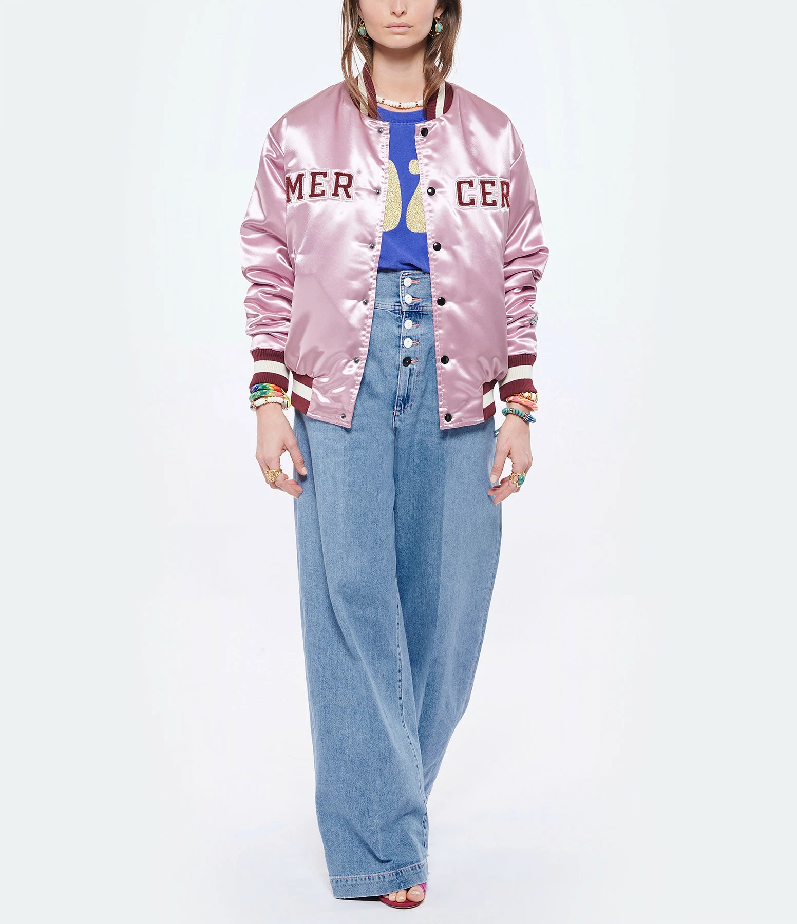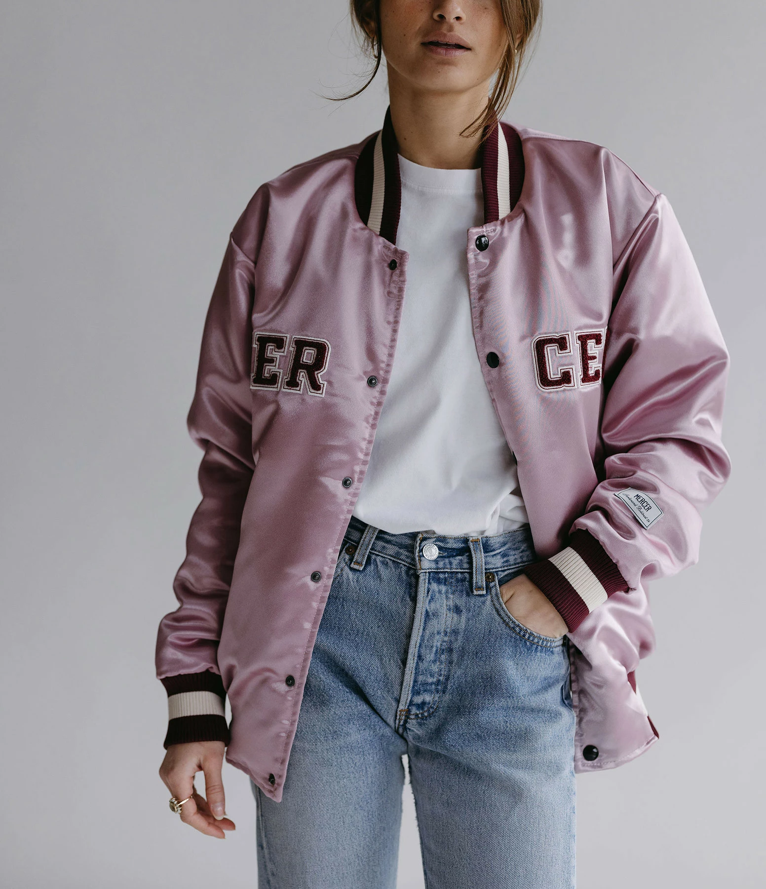 Offres 🔥 MERCER Veste Bomber Varsity Satin Rose 😍