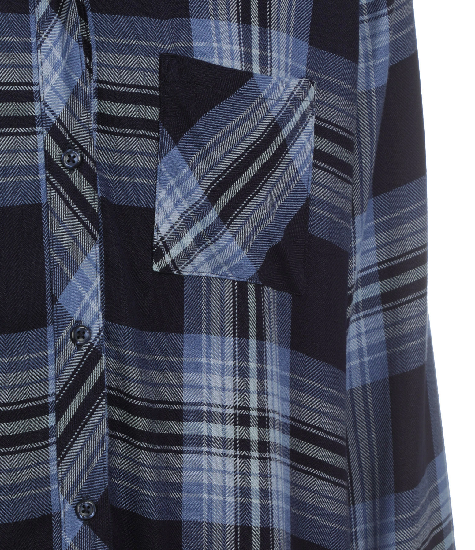 Chemise à carreaux bleus. Col chemise. Manches longues. Fermeture boutonnée. Une poche plaquée poitrine. Coupe droite. Base arrondie.