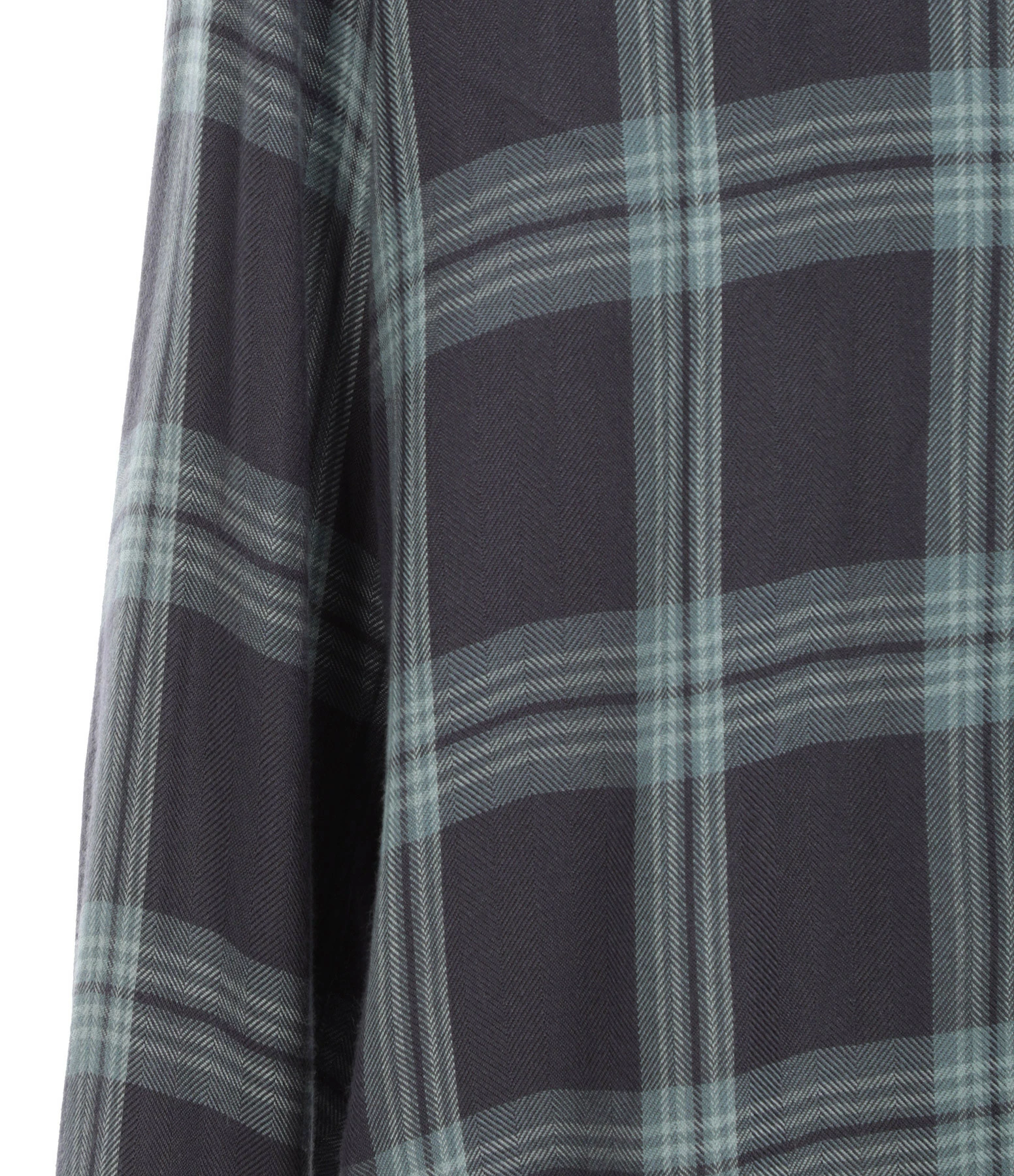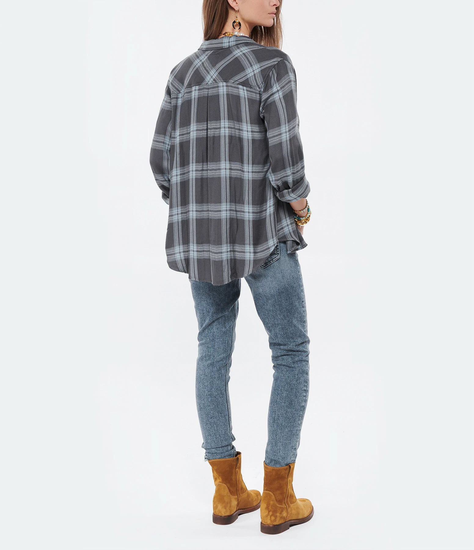 Chemise à carreaux gris et bleus. Col chemise. Manches longues. Fermeture boutonnée. Une poche plaquée poitrine. Coupe droite. Base arrondie.