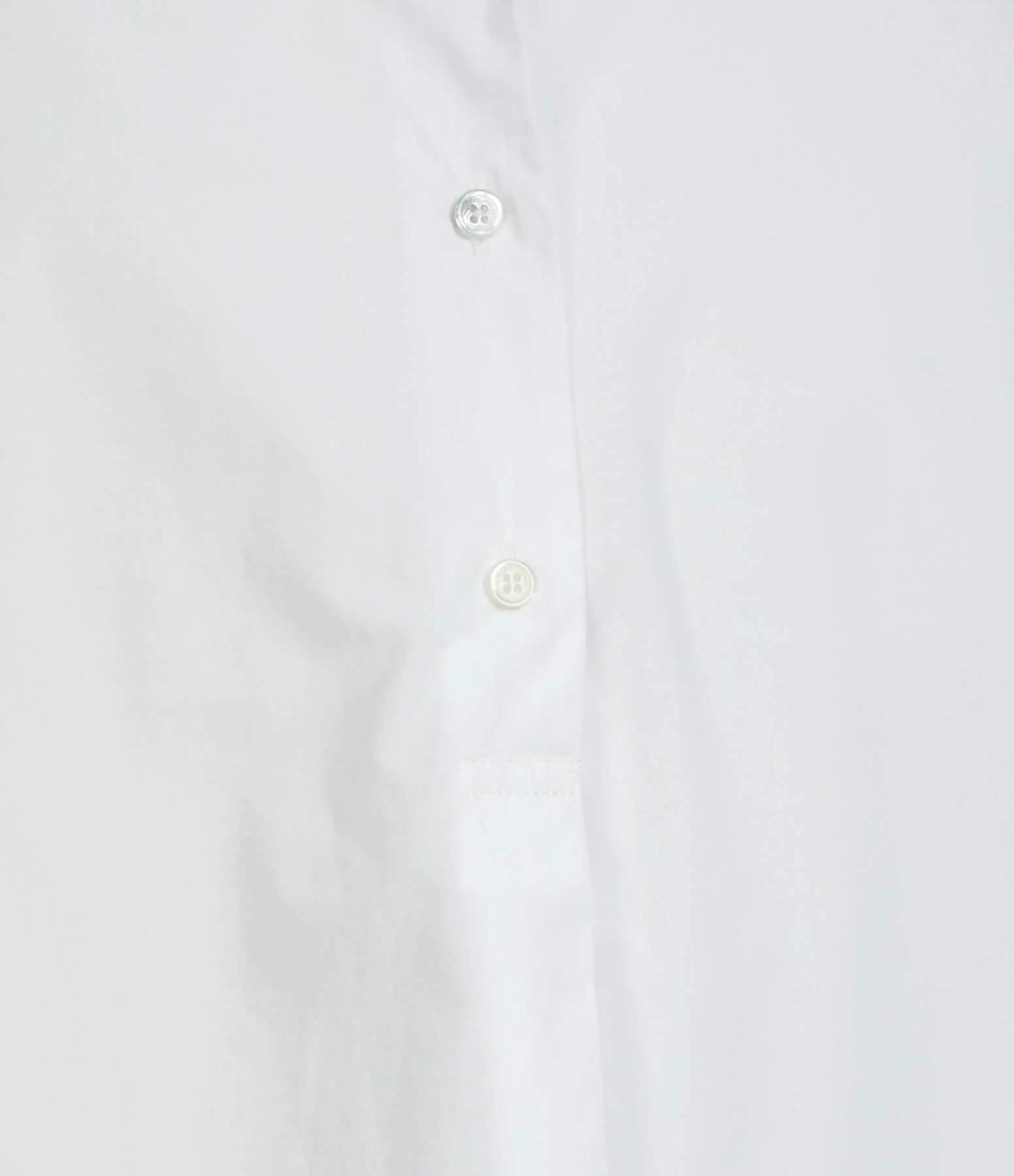 Blouse en coton blanc. Col chemise. Manches courtes effet chauve souris. Fermeture boutonnée. Coupe ample. Base droite.