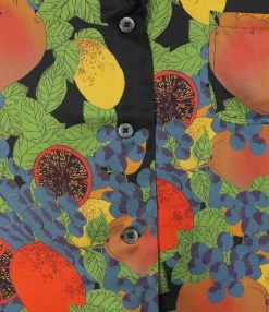 Nouveau ❤️ LA PRESTIC OUISTON Chemise Hawai Soie Imprimé Fruits Noir 🥰