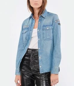 Bon marché 🧨 ZADIG & VOLTAIRE Chemise This Coton Denim Bleu Clair 🧨