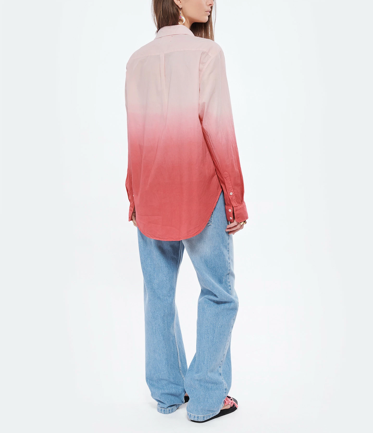 Chemise en coton à imprimé tie & dye rouge. Col chemise. Manches longues. Fermeture boutonnée. Coupe droite. Base arrondie plus courte à l’avant.